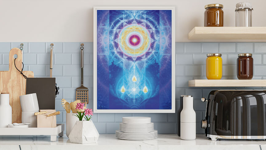Her Crown Chakra painting is a beautiful example—an invitation into spiritual elevation and expanded awareness that works beautifully in a meditation space, a bedroom, or anywhere you want to be reminded of your own light. View Crown Chakra here.